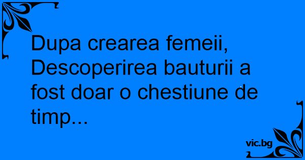 Dupa crearea femeii, Descoperirea bauturii a fost doar o chestiune de timp...