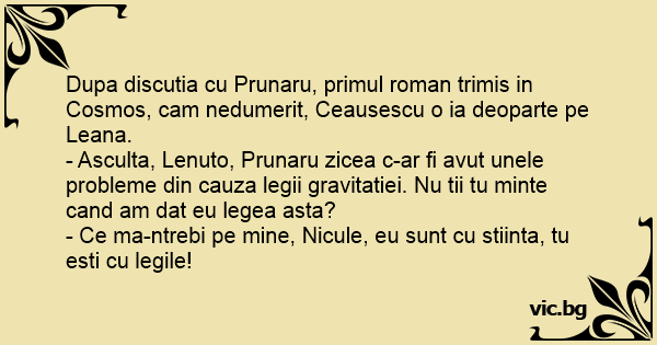 - Asculta, Lenuto, Prunaru zicea c-ar fi avut unele probleme din cauza legii gravitatiei. Nu tii tu minte cand am dat eu legea asta?