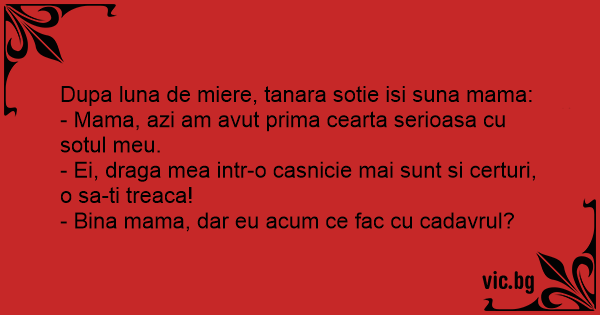 - Mama, azi am avut prima cearta serioasa cu sotul meu.