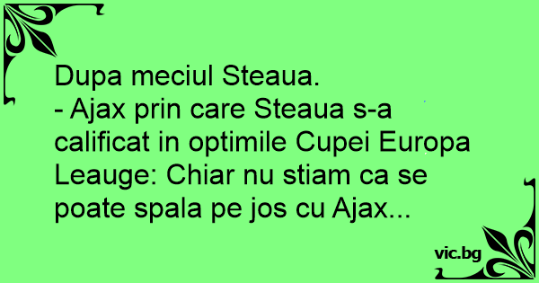 - Ajax prin care Steaua s-a calificat in optimile Cupei Europa Leauge: Chiar nu stiam ca se poate spala pe jos cu Ajax...