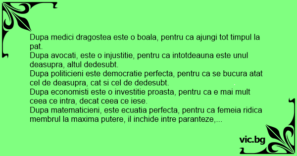 Dupa medici dragostea este o boala, pentru ca ajungi tot timpul la pat.