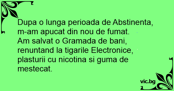 Dupa o lunga perioada de Abstinenta, m-am apucat din nou de fumat.
