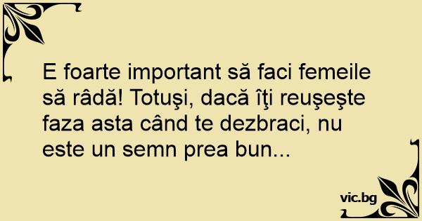 E foarte important să faci femeile să râdă! Totuşi, dacă îţi reuşeşte faza asta când te dezbraci, nu este un semn prea bun...