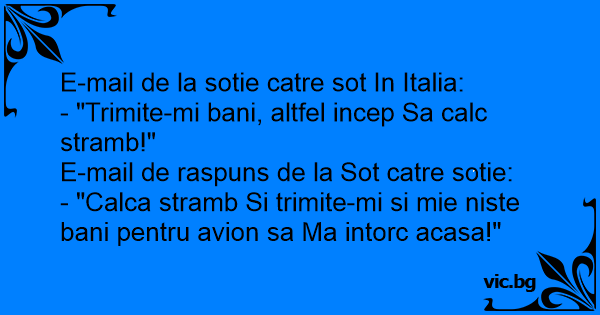 - "Calca stramb Si trimite-mi si mie niste bani pentru avion sa Ma intorc acasa!"