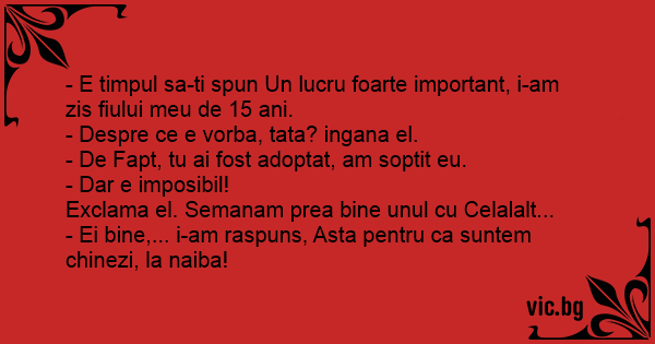 - Ei bine,... i-am raspuns, Asta pentru ca suntem chinezi, la naiba!