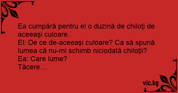 El: De ce de-aceeaşi culoare? Ca să spună lumea că nu-mi schimb niciodată chiloţii?