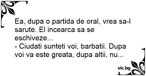 Ea, dupa o partida de оrаl, vrea sa-l sarute. El incearca sa se eschiveze...