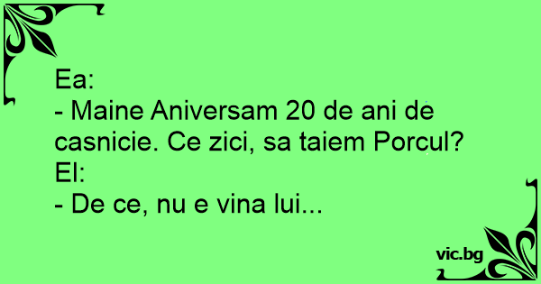 - Maine Aniversam 20 de ani de casnicie. Ce zici, sa taiem Porcul?
