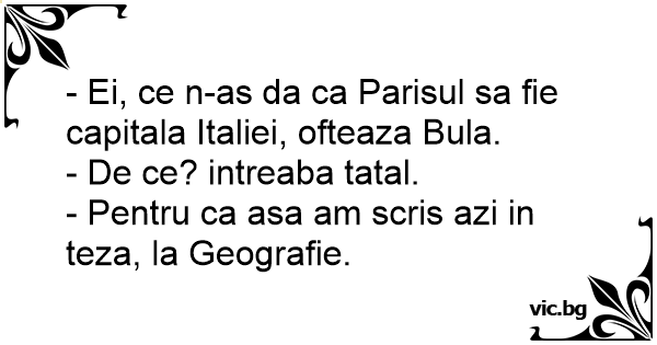 - Ei, ce n-as da ca Parisul sa fie capitala Italiei, ofteaza Bula.