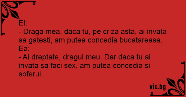 - Draga mea, daca tu, pe criza asta, ai invata sa gatesti, am putea concedia bucatareasa.