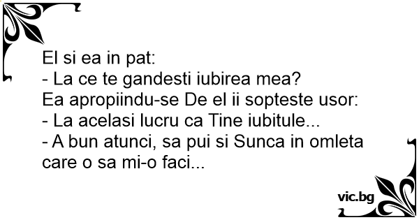 - A bun atunci, sa pui si Sunca in omleta care o sa mi-o faci...