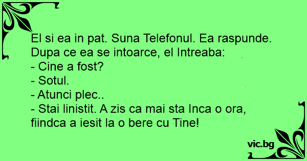 El si ea in pat. Suna Telefonul. Ea raspunde. Dupa ce ea se intoarce, el Intreaba: