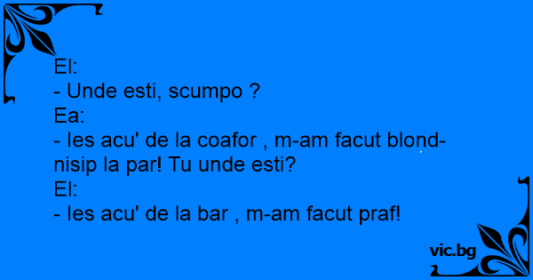 - Ies acu' de la coafor , m-am facut blond-nisip la par! Tu unde еsтi?