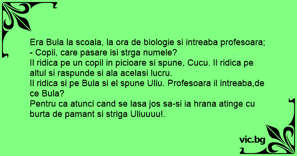 Il ridica si pe Bula si el spune Uliu. Profesoara il intreaba,de ce Bula?