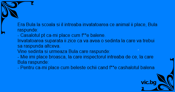 - Mie imi place broasca, la care inspectorul intreaba de ce, la care Bula raspunde: