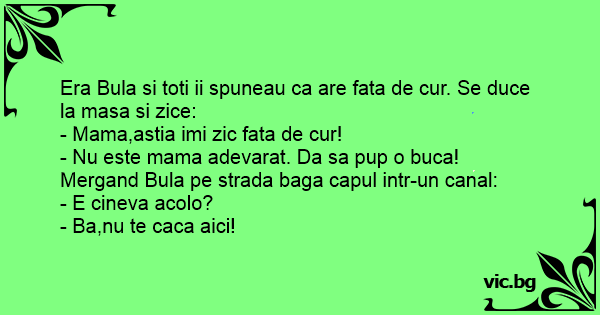 Era Bula si toti ii spuneau ca are fata de cur. Se duce la masa si zice: