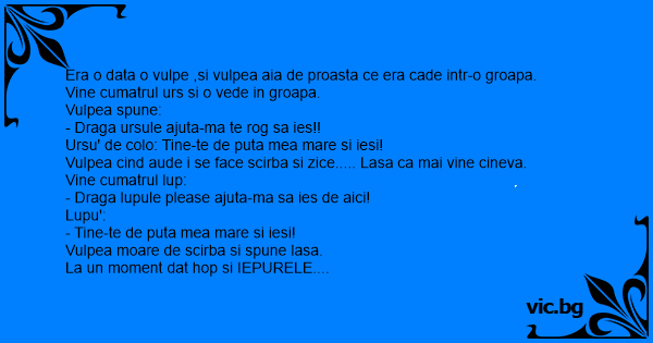 Era o data o vulpe ,si vulpea aia de proasta ce era cade intr-o groapa.