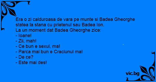 Era o zi calduroasa de vara pe munte si Badea Gheorghe statea la stana cu prietenul sau Badea Ion.