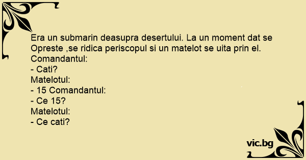 Era un submarin deasupra desertului. La un moment dat se Opreste ,se ridica periscopul si un matelot se uita prin el.