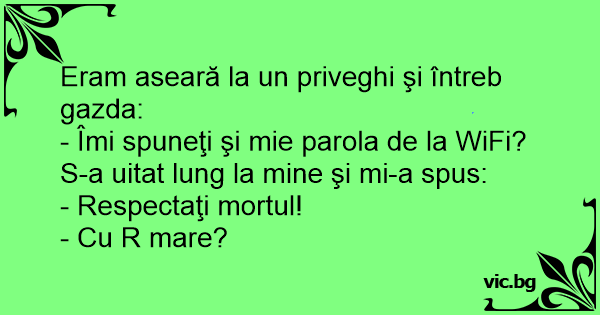 - Îmi spuneţi şi mie parola de la WiFi? S-a uitat lung la mine şi mi-a spus: