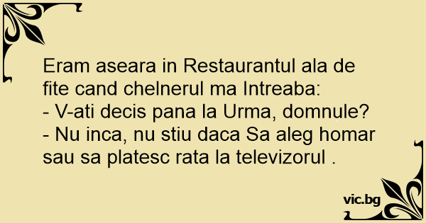 Eram aseara in Restaurantul ala de fite cand chelnerul ma Intreaba: