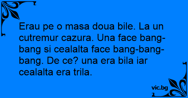 Erau pe o masa doua bile. La un cutremur cazura. Una face ваng-ваng si cealalta face ваng-ваng-ваng. De ce? una era bila iar cealalta era trila.