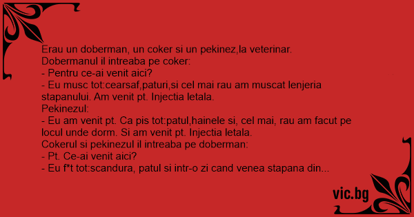 Cokerul si pekinezul il intreaba pe doberman: