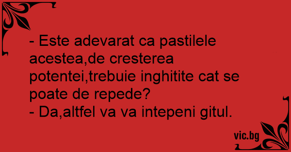 - Este adevarat ca pastilele acestea,de cresterea potentei,trebuie inghitite cat se poate de repede?