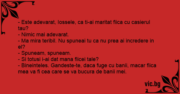 - Este adevarat, Iossele, ca ti-ai maritat fiica cu casierul tau?
