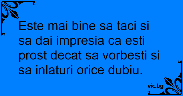 Este mai bine sa taci si sa dai impresia ca еsтi prost decat sa vorbesti si sa inlaturi orice dubiu.