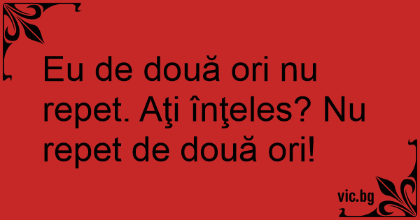 Eu de două ori nu repet. Aţi înţeles? Nu repet de două ori!
