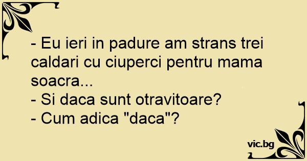 - Eu ieri in padure am strans trei caldari cu ciuperci pentru mama soacra...