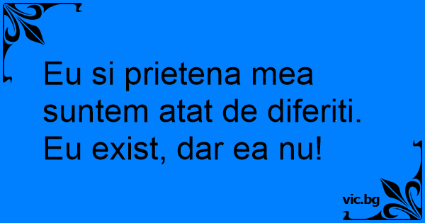 Eu si prietena mea suntem atat de diferiti. Eu exist, dar ea nu!