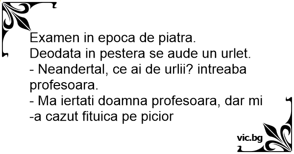- Neandertal, ce ai de urlii? intreaba profesoara.