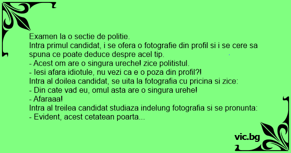 - Acest om are o singura ureche! zice politistul.