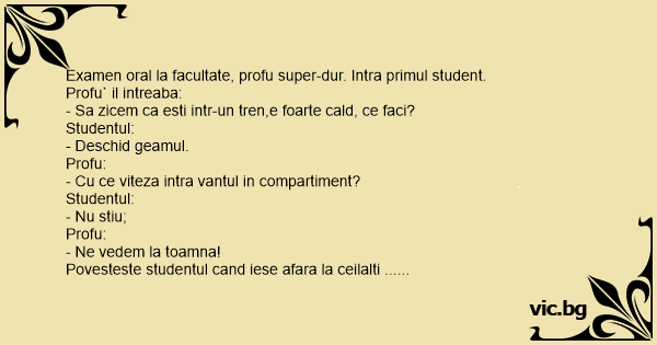 Examen оrаl la facultate, profu super-dur. Intra primul student.