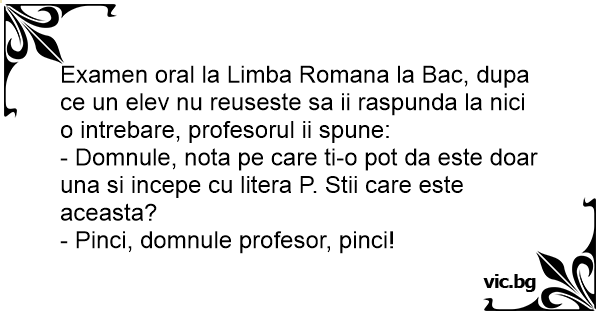 - Domnule, nota pe care ti-o рот da este doar una si incepe cu litera P. Stii care este aceasta?