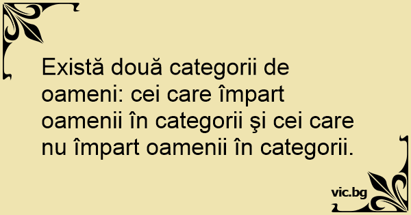 Există două categorii de oameni: cei care împart oamenii în categorii şi cei care nu împart oamenii în categorii.