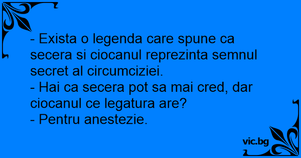 - Hai ca secera рот sa mai cred, dar ciocanul ce legatura are?