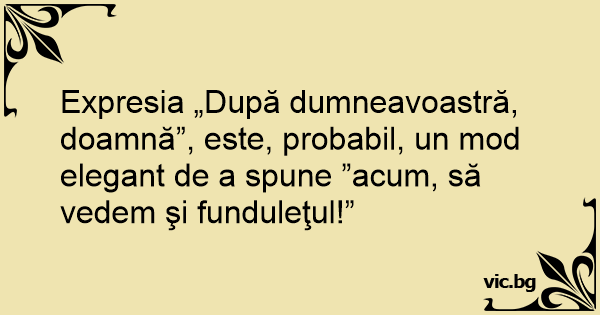 Expresia „După dumneavoastră, doamnă”, este, probabil, un mod elegant de a spune ”acum, să vedem şi funduleţul!”