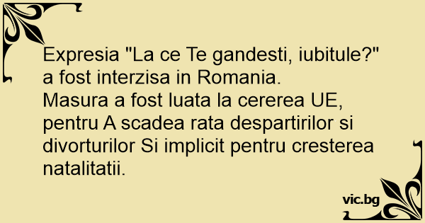 Expresia "La ce Te gandesti, iubitule?" a fost interzisa in Romania.