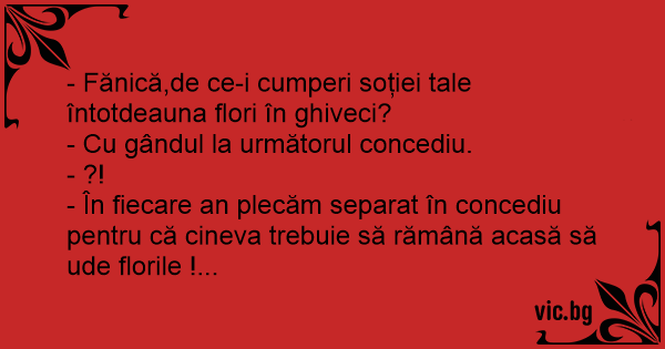 - Fănică,de ce-i cumperi soției tale întotdeauna flori în ghiveci?