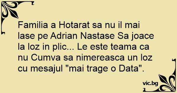 Familia a Hotarat sa nu il mai lase pe Adrian Nastase Sa joace la loz in plic... Le este teama ca nu Cumva sa nimereasca un loz cu mesajul "mai trage o Data".