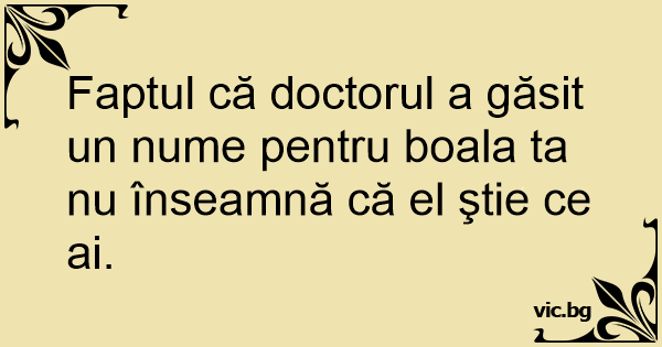 Faptul că doctorul a găsit un nume pentru boala ta nu înseamnă că el ştie ce ai.