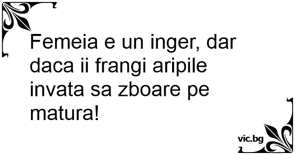 Femeia e un inger, dar daca ii frangi aripile invata sa zboare pe matura!