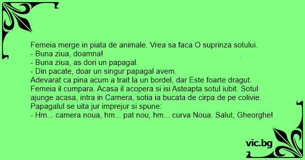 Papagalul se uita jur imprejur si spune: