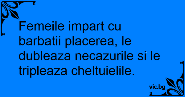 Femeile impart cu barbatii placerea, le dubleaza necazurile si le tripleaza cheltuielile.