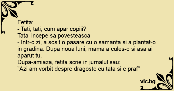 Fetita: - Tati, tati, cum...