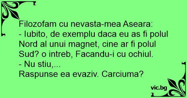 - Iubito, de exemplu daca eu as fi polul Nord al unui magnet, cine ar fi polul Sud? o intreb, Facandu-i cu ochiul.