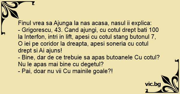 Finul vrea sa Ajunga la nas acasa, nasul ii explica: